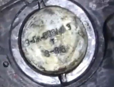 It reads "9 ГЖ 606M", which is the warhead of the S-25-OFM, a variant of the S-25 rocket, an air-to-ground rocket designed to attack hardened targets.